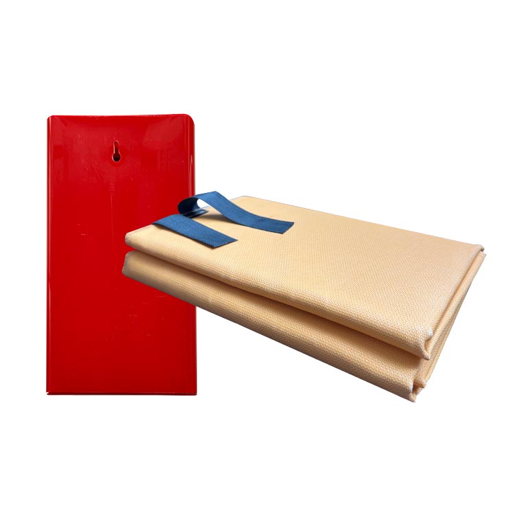 滅火毯是由玻璃纖維等材料經(jīng)過特殊處理編織而成的織物,能起到隔離熱源及火焰的作用,其特點是不燃、耐高溫(55-550℃),將其覆蓋火源、阻隔空氣已達到滅火的目的。